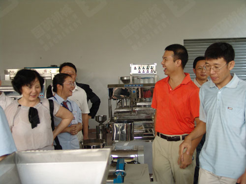 在參觀塑料機械、包裝機械和食品機械展廳時,代表們饒有興趣地向陪同人員詢問機械的性能、價格和市場情況。當代表們走近辦制袋廠的配套機械產品吹膜機、制袋機、印刷機、破碎機、塑料造粒機和辦編織袋廠的配套機械產品拉絲機、收卷機、圓織機、印刷機、覆膜機、裁袋機、縫包機時,對這種一站式的經營模式大加贊賞;在食品機械展廳得知國研牌河粉機是全國第一品牌時,好幾個企業(yè)家馬上表示說,國研牌河粉機的名氣的確很大,他們開車天天聽國研牌河粉機的廣告。