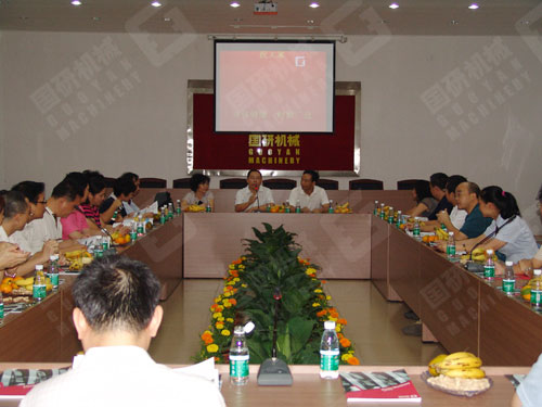 隨后,企業(yè)家們在國研機械公司總部多功能會議廳舉行了座談會。公司董事長兼總經理王聲位向各位企業(yè)家介紹了國研機械的創(chuàng)建及發(fā)展歷程。他十分感謝各位企業(yè)家親臨國研機械參觀考察,也十分感謝駿景花園企業(yè)家俱樂部為企業(yè)家們提供了一個很好的交流與合作的平臺。他表示今后國研機械將進一步加強與各企業(yè)之間的合作,共同進步,共同發(fā)展,同時加強企業(yè)研發(fā)和整合營銷的能力,為打造“中國創(chuàng)造,百年國研”的長壽型企業(yè)而不懈努力。