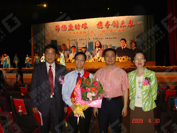 4月28日上午,廣州市委大禮堂張燈結(jié)彩、鑼鼓喧天,一派喜氣洋洋。廣州市委、市政府慶?!拔逡弧眹H勞動節(jié)暨勞動模范和先進集體表彰大會在這里舉行。廣州市國研機械設備制造有限公司市場部經(jīng)理劉啟剛同志作為天河區(qū)6萬多家民營企業(yè)唯一當選的廣州市勞動模范出席了表彰大會。廣東省委常委廣州市委書記朱小丹、市長張廣寧等省市領導親自為劉啟剛等勞動模范頒發(fā)廣州市勞動模范獎狀和榮譽證書并合影留念。