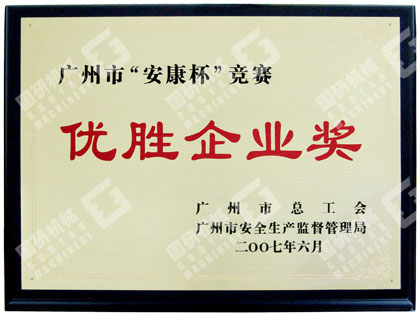 近日,廣州市總工會、廣州市安全生產(chǎn)監(jiān)督管理局為在全國總工會和國家安全生產(chǎn)監(jiān)督管理局組織開展的以“掌握安全生產(chǎn)知識,爭做遵章守紀職工”為主題的“安康杯”競賽活動中成績顯著的47家企業(yè)進行了表彰,廣州市國研機械設備制造有限公司榮獲“全國安康杯競賽廣州市優(yōu)勝企業(yè)”榮譽稱號。